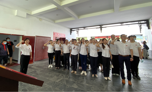 参观完“半条被子的温暖”专题陈列馆之后,院党委委员、副院长、教工党支部书记余蓉晖同志带领全体党员重温入党誓词,在接受党性教育和精神洗礼的同时,坚定对中国共产党的信仰和忠诚。
