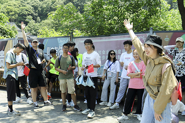 上午8:30,团建活动在成员的欢声笑语中正式拉开帷幕,骑行组成员不畏烈日的曝晒和路途的遥远,一路骑行至昭山。本次活动共分为四项,分别是“党史快问快答”、“一块五团结抱”、“听红歌识曲”、“登高忆先贤”。在“党史快问快答”游戏中,参与人员积极抢答,正确答案脱口而出,“中国共产党的第一任总书记是……”还未等主持人说完题目,便有人喊出陈独秀的名字,现场掌声不断。随后,beat365官网社团部委员周妍在采访中激动地说道。“在党史问答的过程中,真正夯实了我的党史基础,并在思考中提高了个人的党性修养。"