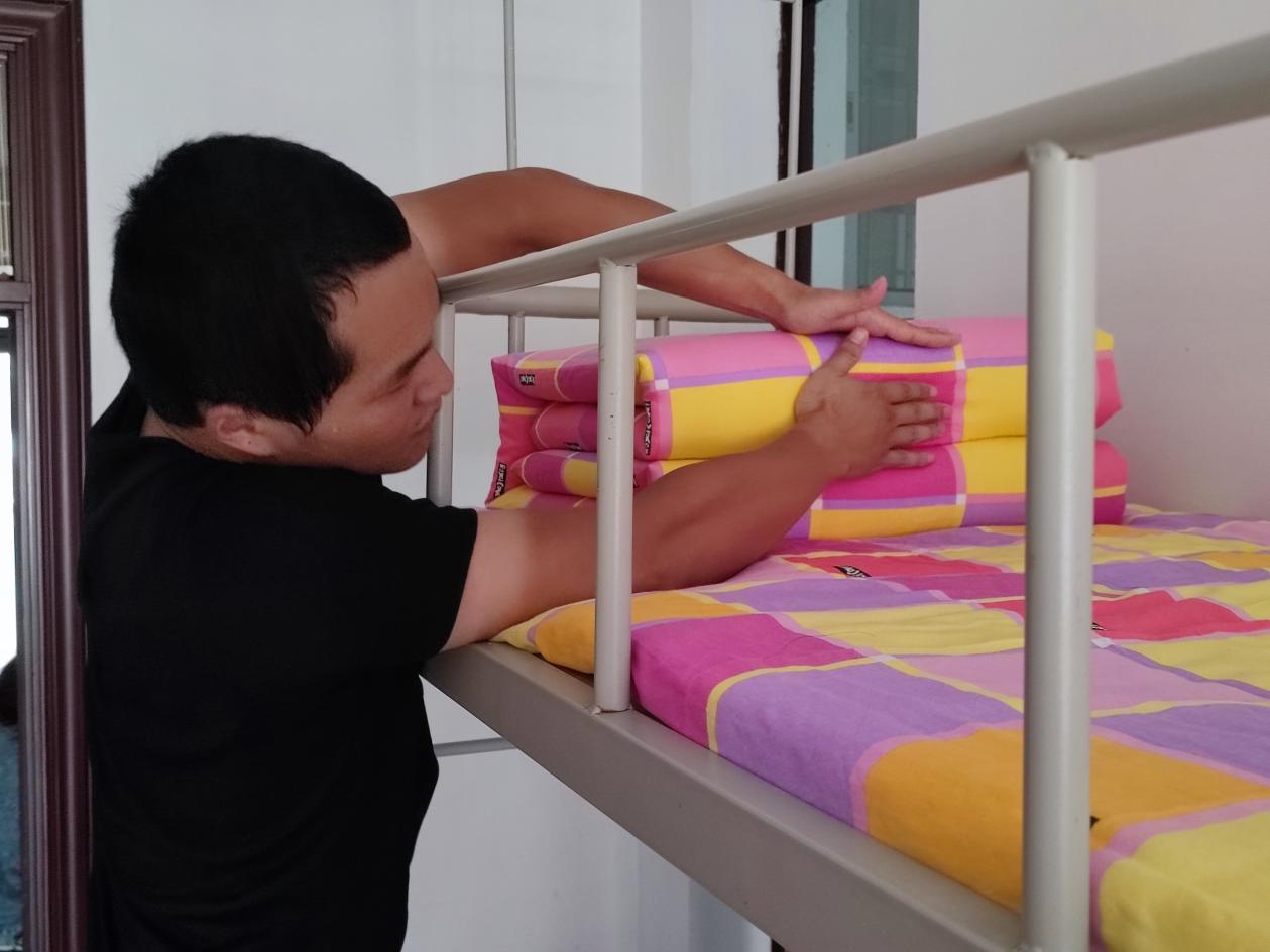 “出门看队伍,进门看内务”,内务整理作为军训必修课之一。退役军人们仔细向新生们介绍内务标准并亲自示范,短短几分钟退役军人们将书籍归类做到整整齐齐、鞋子衣物做到各有归处、被子一捋做到四四方方,把杂乱狭小的宿舍整理得整齐宽敞。beat365中文唯一官网退伍军人杨鹏志说道:“走出军营,重返校园,脱下军装,我时刻以军人的标准严格要求自己。希望新生们能学习军人的意志品格,脚踏实地,时刻严格要求自我。”