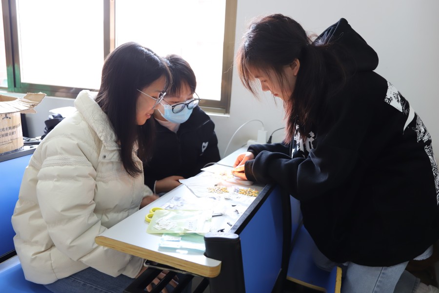 经过不断的摸索与实践,同学们完成了各自的焊接制作,雪花灯通过电流开始闪烁发光。在看到自己的创作成果后,22级文学三班的李雄自豪地说道:“这次活动实现了自己想要完成一个雪花灯制作的愿望,提升了自己的动手能力、沟通能力,拉进了与大家的距离,虽然活动时间不长,但对我的影响十分深刻。”
