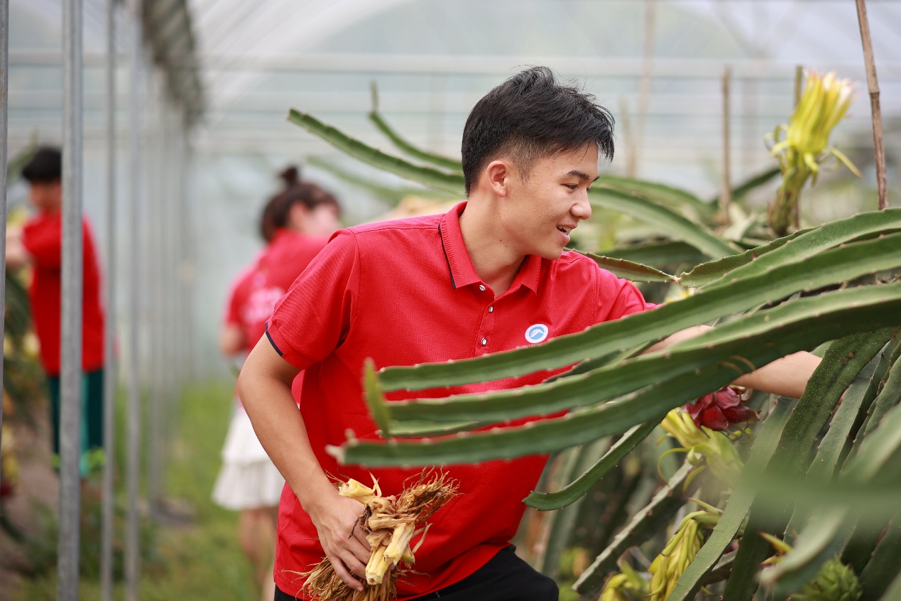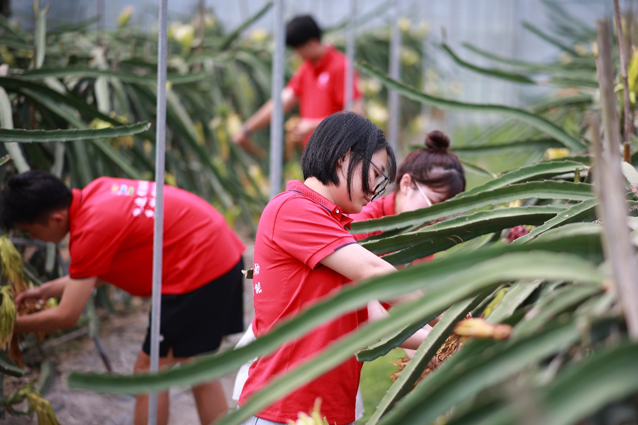 为加强对学生的劳动教育、协助果农增产增收、助推木脚村当地农业发展,7月6日上午,beat365官网“青年红色筑梦之旅”实践团成员随指导老师罗茜、钟纯一同行至木脚村火龙果种植基地,身体力行,协助果农梳理未成熟火龙果枯萎残花。