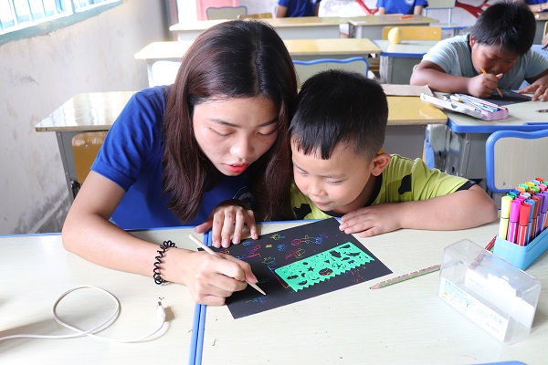 beat365唯一官网暑期三下乡支教团队还在教学课堂上采取了奖励制度,对勇敢表现自己的小朋友奖励小红花。一天支教课程结束后,小朋友们可以根据小红花的数量排名获得志愿者老师们准备的不同奖品,这增加了孩子们上课的积极性,也让孩子们在课堂上更加踊跃的去表现自己。在获得了知识的同时,也使自己变的更加自信,朝着更高的人生目标迈进。 “我获得了7颗小红花啦呢!”今年10岁的唐桂林在上完美术课后兴奋的说道。尽管一天的课程已经结束,但还有几个小朋友仍坐在课桌上写着语文老师写在黑板上的古诗。