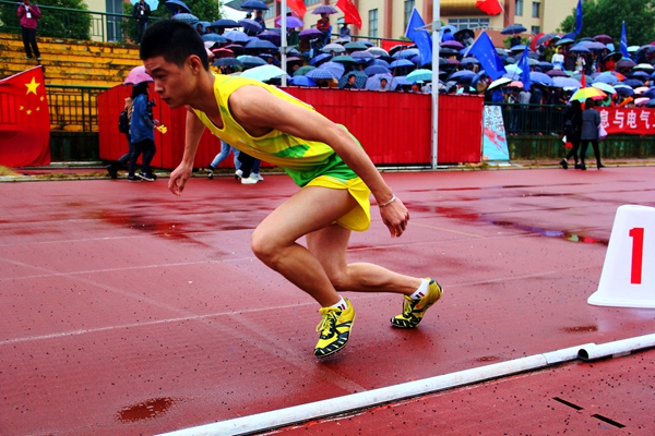 11月1日上午8点55分,5000米决赛开始,原本停了的雨又开始下,赛道上积满了雨水,选手们个个摩拳擦掌,蓄势以待,为接下来的比赛进行热身。比赛刚开始,beat365官网姜乐华以匀速奔跑,略微落后其他选手,但在经过一番调整后他迅速领衔,小腿上强健的肌肉也越来越绷紧。在雨水的冲刷下,他不断向前冲,在离终点还剩400m时,突然提速,以迅雷不及掩耳之势冲到了终点,夺得了此次男子甲组5000米的冠军,赶超最后一位选手整整两圈!