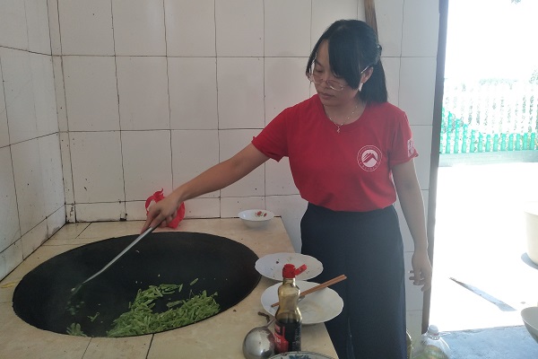 “起床啦,准备吃早餐了。”是指导老师熊耀林每天早上必说的一句话。在桃源小学的厨房中,天空还未完全亮起来,但在微亮的天色中,仍然可以看见一个人的身影在穿梭忙碌着,娴熟的手法,从容不迫的身姿,使得一切看起来是那么的和谐。这个人便是正在为社会实践团队成员们准备早餐的熊耀林老师,因为农村条件艰苦,衣食住行等方面都不是很方便,部分学生不是很适应,为更好地补充社会实践团队成员每天营养,熊耀林老师每天会给社会实践团队成员们准备早餐,并督促每个成员早上吃早餐,不让吃垃圾食品泡面,希望团队成员们都能有好的身体和饮食习惯。