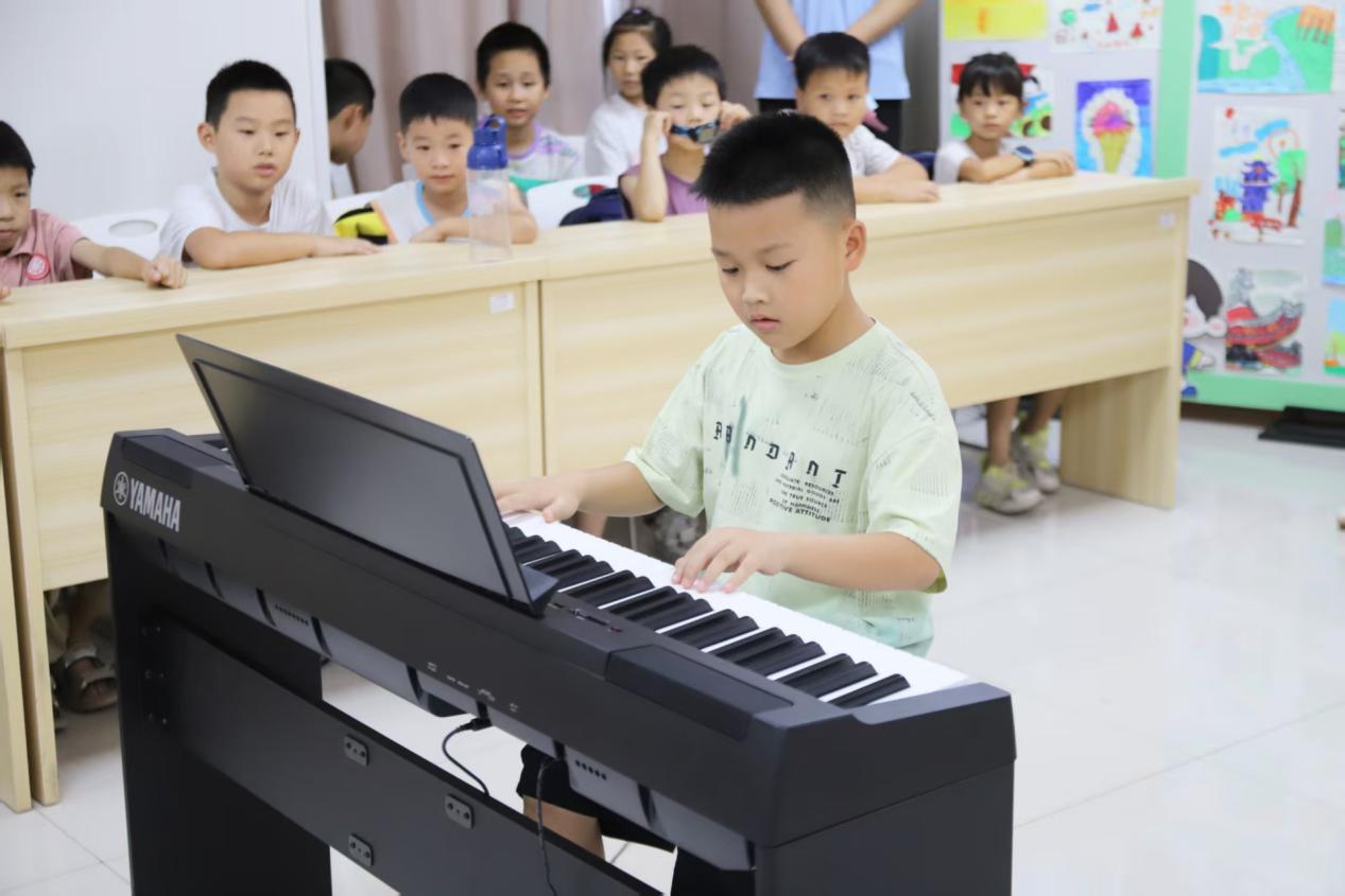 舞蹈《强国少年》瞬间点燃全场。孩子们以灵动的身姿随激昂旋律跃动,伸展、旋转间尽显新时代少年的蓬勃朝气与强国担当。每个动作都是对“少年智则国智,少年强则国强”的生动注解,台下掌声如潮。随后,一曲钢琴独奏《梦中的婚礼》为热烈氛围注入柔情。琴键流淌的旋律如月光倾泻,将观众带入童话般的静谧梦境。小演奏者指尖的流畅与专注,不仅展现了艺术教育的浸润成果,更让音乐之美在社区悄然生根。